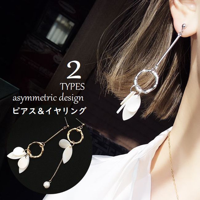 イヤリング《1色 パール&花びら風モチーフ アシンメトリーイヤリング》 レディース 小物 アクセサリー ジュエリー ピアス イヤリング フープ イヤリング アシンメトリー パール 花びら ゴールド サークルリング メール便可//2//